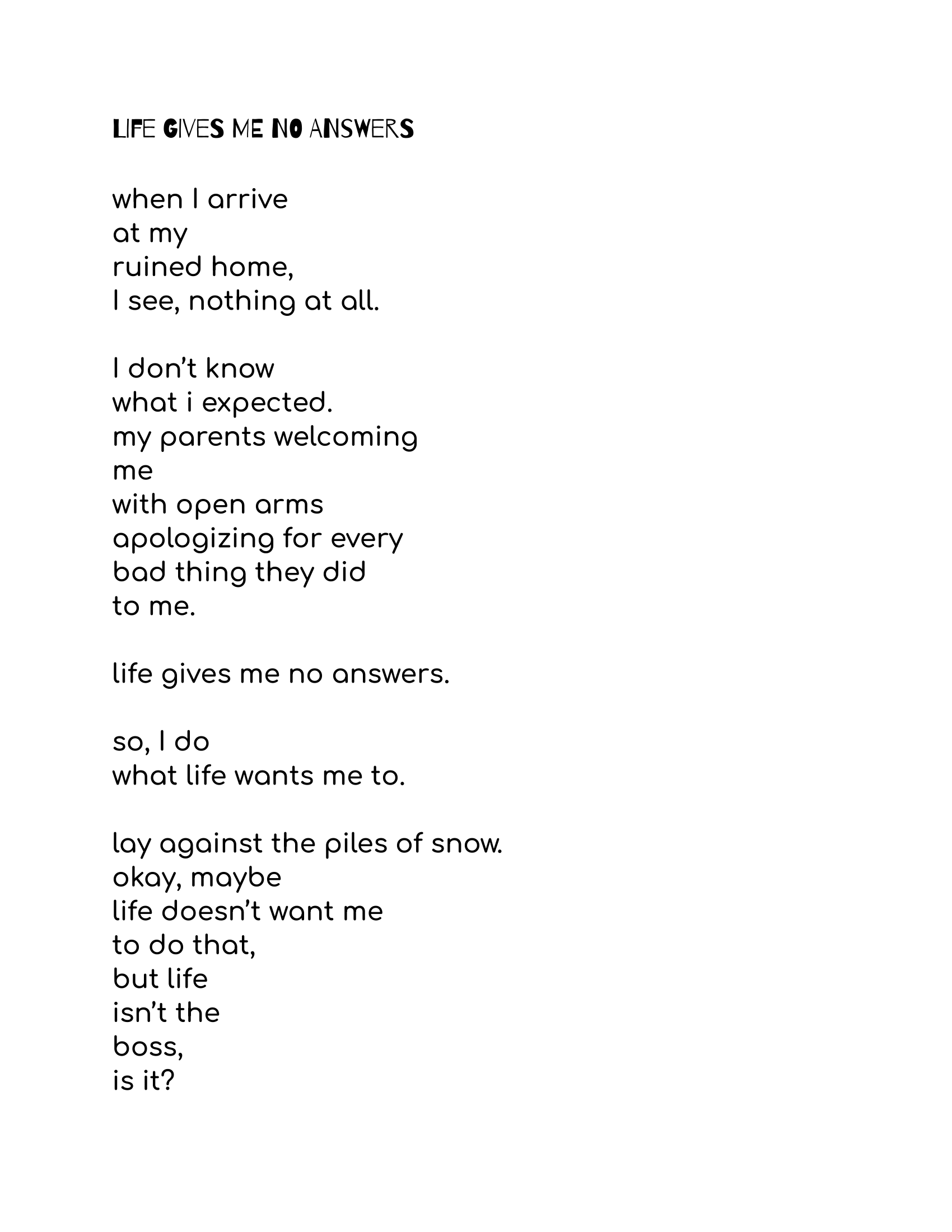 Raw, reflective, and unafraid to be uncomfortable, Snow in the Sunshine blends poetry and narrative to tell a story about being seen, being forgotten, and what remains when everything else is gone.